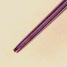 Cuticle Scalar with 1mm wide contoured blade. Five & 3/4 (5.75) inches, stainless steel, polished blade, satin finish handle.