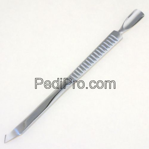Cuticle Scalar & Scraper combo. Dimpled grip, 10mm wide contoured scalar blade, six (6) inches, stainless steel, polished finish.