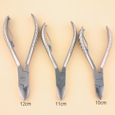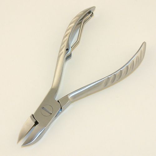 Nail Cutter with gently curved cutting edge. Single fold-away spring, 10cm long, stainless steel, satin finish.