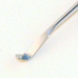 Dual end spatula with one bent or angled. Octagonal (eight-sided) serrated handle, six (6) inches, stainless steel, polished finish.