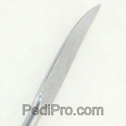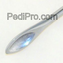 Unique tool with lance-like spatula on one end and spoon scoop on other end. Octagonal (eight-sided) serrated handle, seven (7) inches, stainless steel, polished finish.