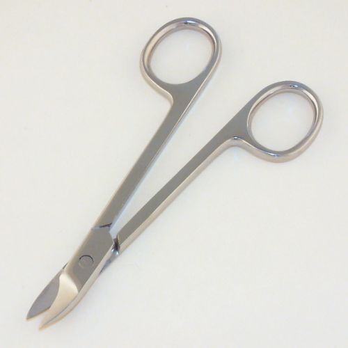 Toe Nail Scissors with fixed joint (NOT adjustable) and gently curved cutting edges. Four & 1/2 (4.5) inches, stainless steel, polished finish.